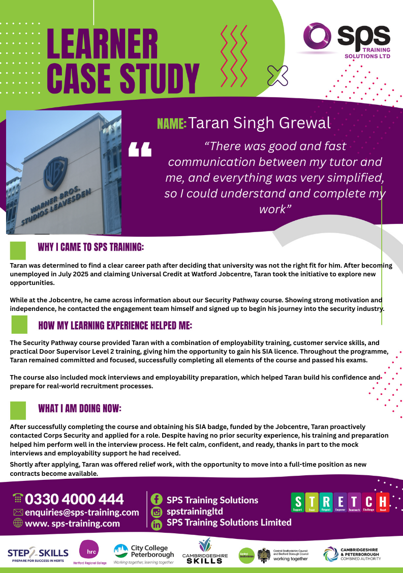Welcome to our Case Studies and Testimonials page—a dedicated space where you can explore real stories and experiences from learners who have successfully completed our training programmes, as well as insights from employers and key stakeholders. Here, you’ll find first-hand accounts of personal and professional growth, the impact of our courses in the workplace, and the value our training delivers across multiple sectors. Whether you’re considering enrolling or partnering with us, these stories offer an authentic glimpse into the transformative outcomes of our work.